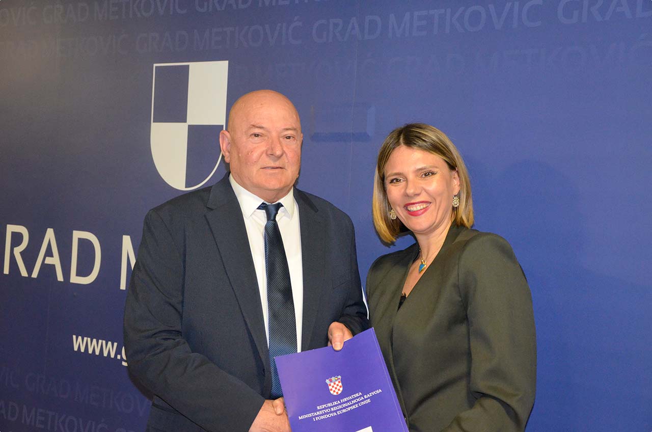 Državna tajnica Ministarstva regionalnoga razvoja i fondova Europske unije Zrinka Raguž u petak je u prostorijama Grada Metkovića, u nazočnosti župana Nikole Dobroslavića i županijske pročelnice Žakline Marević, uručila ugovore o dodjeli sredstava Županiji te jedinicama lokalnih samouprava iz DNŽ.